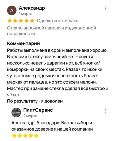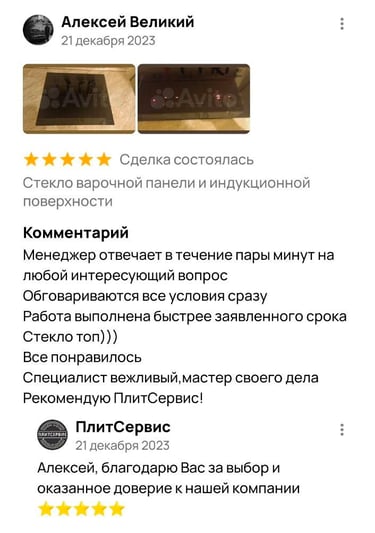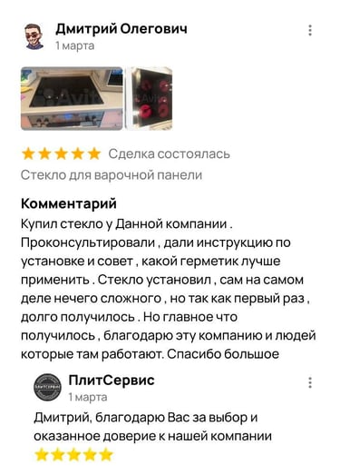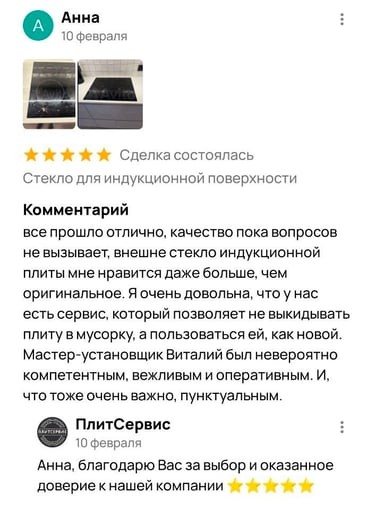 7 лет безупречного опыта замены стеклокерамики от ПлитСервис