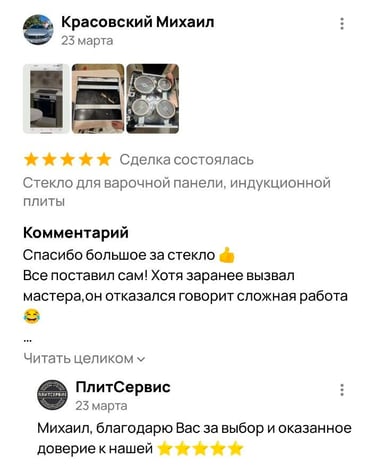 Услуги по замене стеклокерамических поверхностей для варочных панелей, индукционных плит и кухонных плит от профессионалов с многолетним опытом. ПлитСервис — эксперты в своей области с 2017 года.
