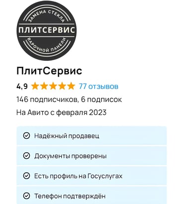 7 лет безупречного опыта замены стеклокерамики от ПлитСервис